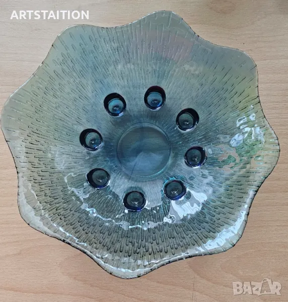 1.Стъклена купа в синьо с зелени оттенаци с крачета, цена 10лв.