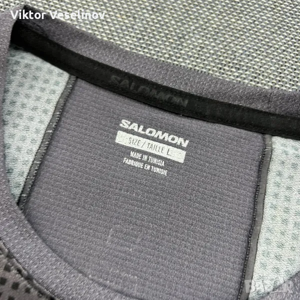 SALOMON Мъжка Еластична Тениска Размер L Сива Къс Ръкав Туристическа → Обява 49831360