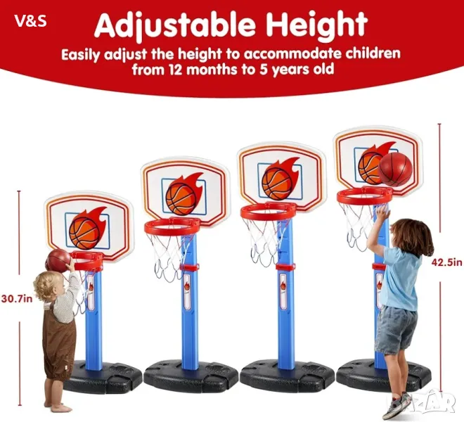 JOYIN Комплект аркадни баскетболни игри за малки деца, регулируема баскетболна врата с 4 топки за деца на закрито и на открито, карнавални игри, коледен подарък за рожден ден за момчета, момичета на възраст 1 и повече години - включена въздушна помпа