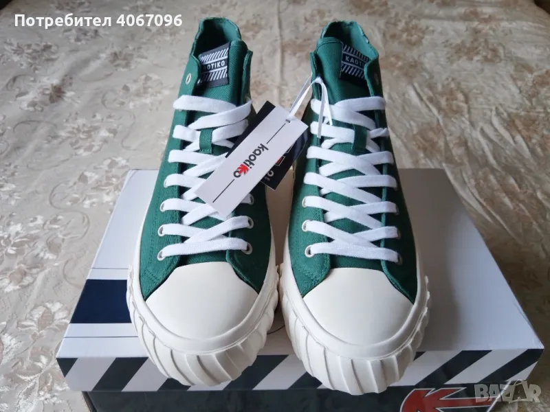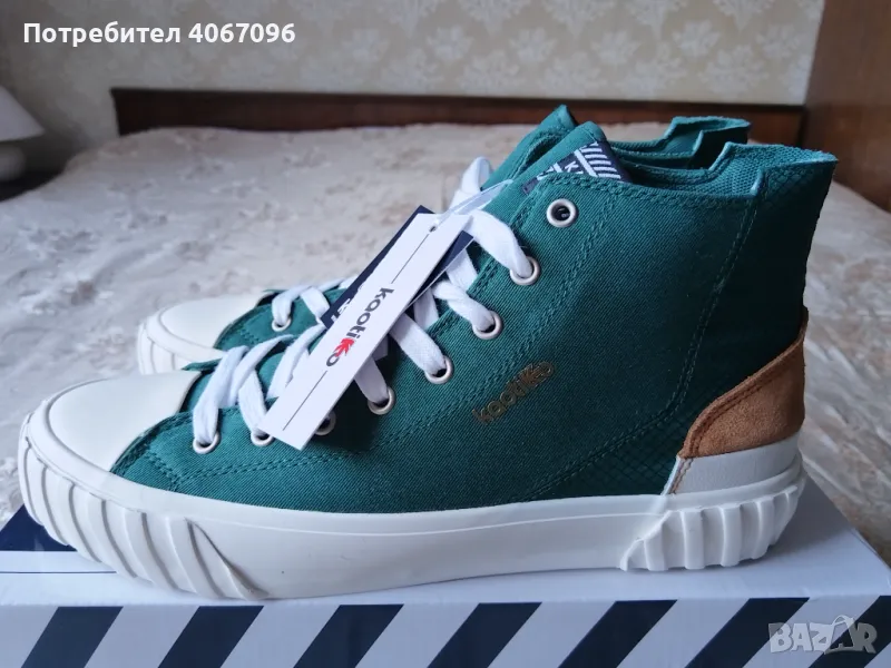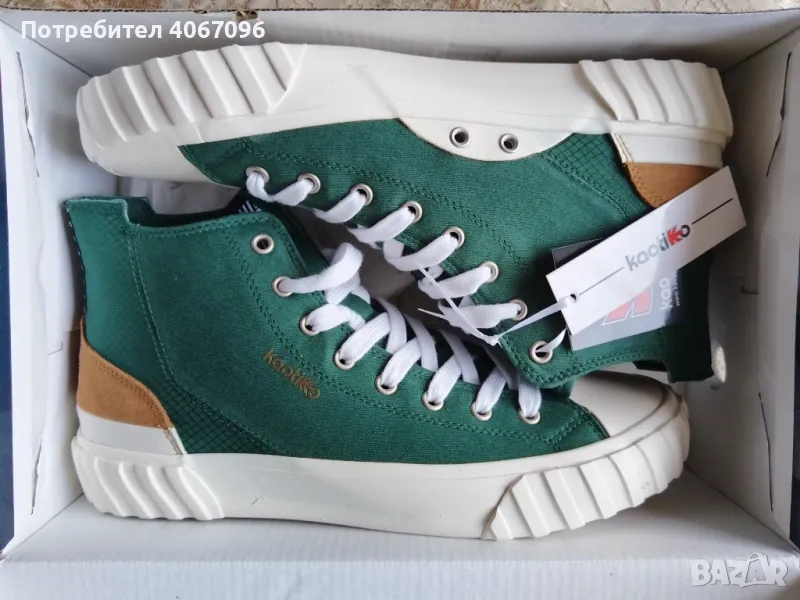 Чисто нови кецове/сникърси Kaotiko (Испания). Зелени, материал – естествена кожа, естествен велур и текстил. Размер 44 - дължина на стелката 28,6 см. Цена - 23 евро. Крайна цена (не подлежи на коментар).