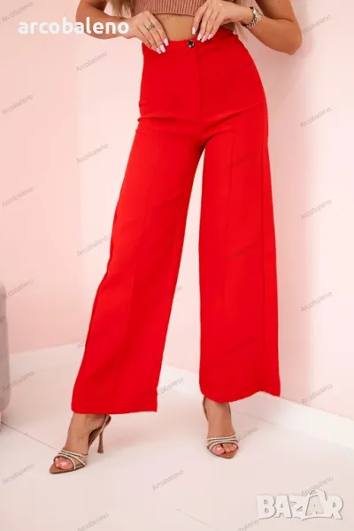 Представяме ви модни панталони. Панталоните са с широки крачоли с чупка. Панталон се закопчава с копче. Перфектен за работа и ежедневна употреба. Панталона е изработен от висококачествен материал. Налични размери: S, M, L.