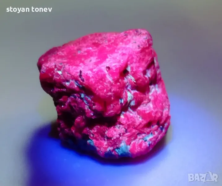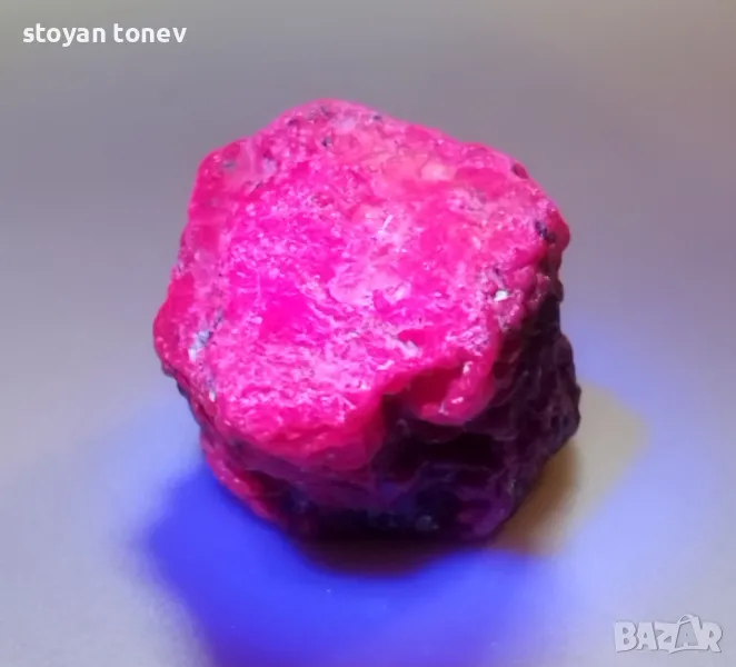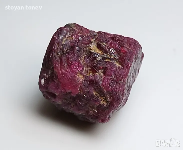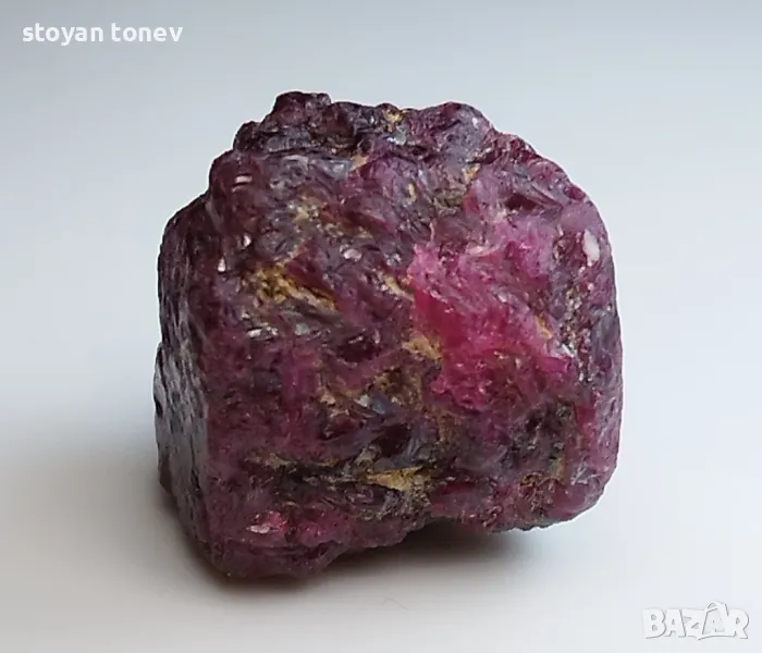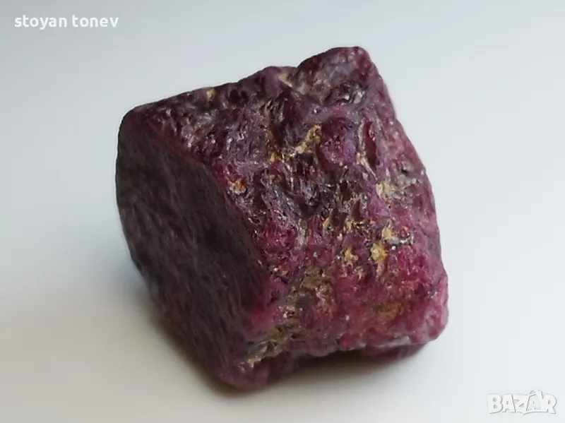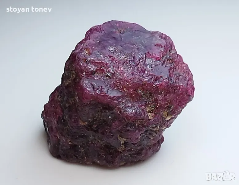 кристал с тегло 55кт. и произход Африка. Полупрозрачен. Цвета му е лилавеещо червен. Свободна форма с размери: 18 x 16 x 15 mm.