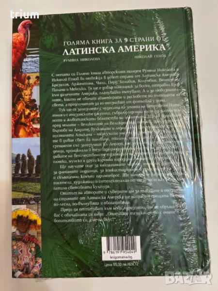 С петата си Голяма книга авторският тандем Румяна Николова и Николай Генов ви отвежда в девет страни от Латинска Америка: Бразилия, Аржентина, Чили, Перу, Боливия, Колумбия, Венецуела, Панама и Мексико. Тя ще е добър помощник за всеки, отправил взор към далечните Америки, планувайки пътуване. А и за любознателните, които не обичат авантюрите и рисковете по пътищата на света, а предпочитат да го опознават от фотьойла у дома.
