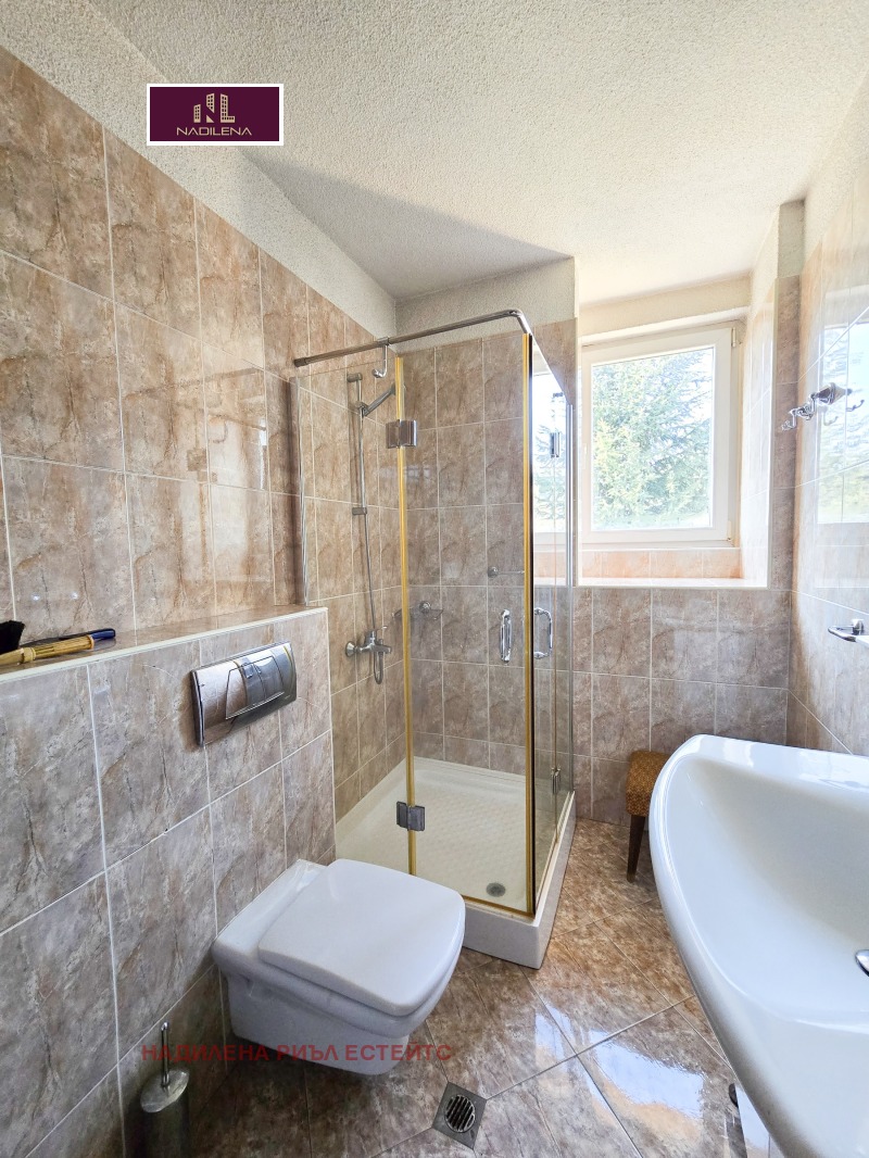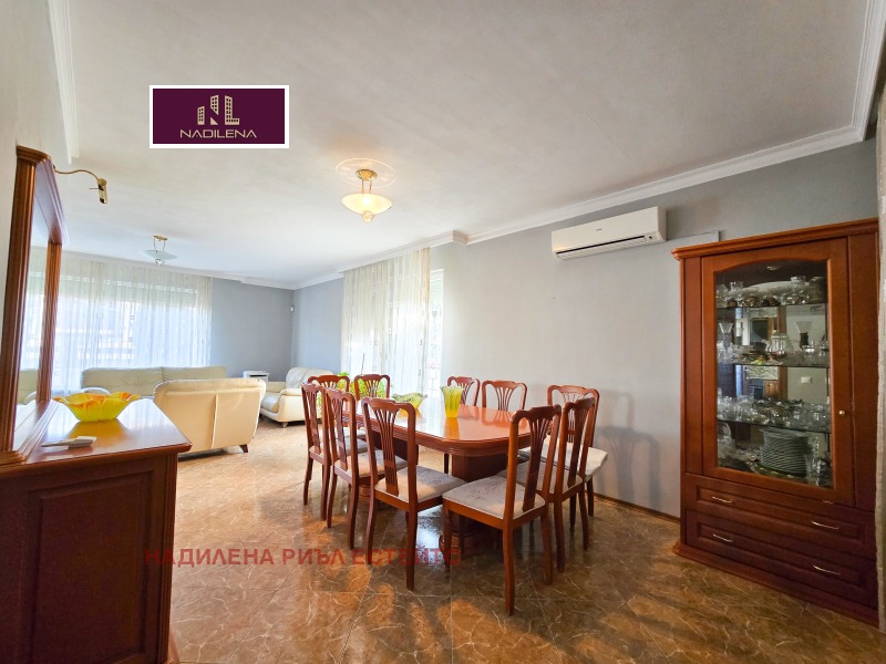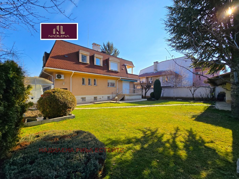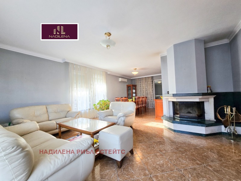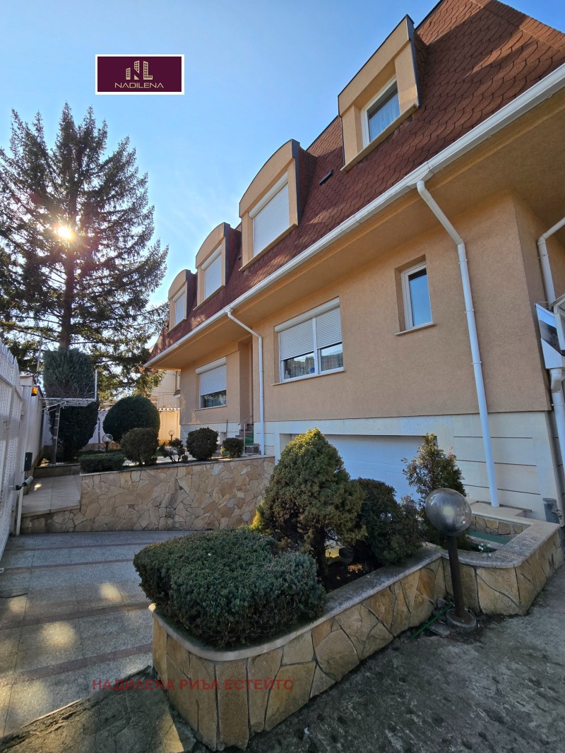 ДО ФАНТАСТИКО! МНОГОФАМИЛНА КЪЩА! Надилена риъл естейтс предлага за продажба изключителна къща с РЗП 405кв.м., с ограден и озеленен двор с площ от 726 кв.м. Намира се на комуникативно, но същевременно тихо и спокойно място за живеене. Имотът е саниран и изключително поддържан, поставена е добра изолация, външни ролетни щори, климатици за охлаждане, отоплението е решено с индивидуално газово котле, СОТ. Разгънатата площ е разпределена по следния начин: първи етаж-антре, тоалетна за гости, представителен хол с камина, трапезария, отделно оборудвана кухня с всички ел.уреди, спалня със собствена баня с тоалетна, гардеробна, тераса. 2-ро ниво: общо 4 стаи, 2 бани с тоалетни, излаз на голяма тераса. За второто ниво има и отделен вход откъм двора. Сутерен: двоен гараж, техническо помещение, санитарен възел, мокро, 3 складови помещения. Баните са с хидромасажни вани и душ кабини. Настилките са естествен паркет, гранит, гранитогрес. Къщата е многофункционална, много слънчева и светла, направена е с чудесни довършителни работи, подходяща е както за живеене, така и за офис. Дворното място е равно, отлично озеленено, оградено с висока ограда, има и градинско BBQ с пещ и кухня, помещение за градинските инструменти, санитарен възел. Има възможност да се паркират в имота още 3 коли. За допълнителна информация и огледи се обръщайте към Надя Антова-0888/788 420, 088/9999 413