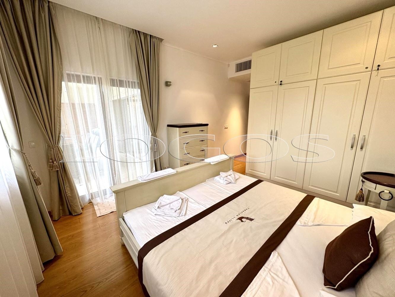 Предлагаме Ви тристаен апартамент с морска панорама в 'Трейшън Клифс Голф енд Спа Резорт'. Апартаментът е с площ от 153,26 кв.м и има следното разпределение: всекидневна с кухненски бокс, спалня с дрешник и комбиниран санитарен възел, втора спалня със самостоятелен санитарен възел, отделна тоалетна за гости, две тераси. Жилището се продава напълно обзаведено и оборудвано, готово за ползване или отдаване под наем. Към него има и прилежащо складово помещение с площ от 7,49 кв.м. Намира се в част 'Марина' с прекрасна гледка към морето и на метри от морския бряг. 'Трейшън Клифс Голф енд Спа Резорт' се намира на Северното Черноморие в България и включва: два плажа, релаксиращи зони, съоръжения за водни и наземни спортове, панорамни ресторанти. Голф игрището е проектирано от Гари Плейър на скалист терен над морето. В комплекса има шест жилищни сгради с впечатляващ дизайн, съобразен с местните архитектурни традиции. Оферта2702.
