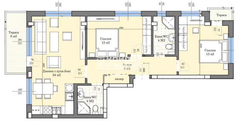 Оферта 66282: Предлагаме Ви функционален тристаен апартамент самостоятелен на етаж с перфектно разпределение в нова модерна сграда със собствен стил, изчистена визия, проектирана така, че да създаде максимален комфорт и уют за живеене. Проектът представлява нискоетажно жилищно строителство, в съответна близост до новоизграден парк, спортни площадки и места за отдих и почивка. Жилището се състои от просторна югозападна дневна - 24 кв.м., обособена на кътове, две самостоятелни непреходни спални по 13кв.м., входно антре, килер с опция за перално помещение, две бани с тоалетни и две тераси. Сградата привлича вниманието със своята локация, разположена в близост до Гребна база и парк Отдих и култура, обособили се като едни от най-развиващите се и предпочитани райони за живеене в града. Сградата се изпълнява от една от водещите строителни компании, наложила се на пазара с множество готови обекти, изпълнени с изключително високо качество и прецизност. Възможност за разсрочено плащане в рамките на строителството , както и възможност за закупуванечрез Банков Кредит с изключително изгодни условия за клиенти на агенция 'Кондор'!!! Посочената продажна цена е без ДДС !!! СВОБОДНИ ПОДЗЕМНИ ГАРАЖИ и ПАРКОМЕСТА !!!