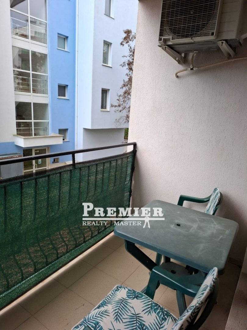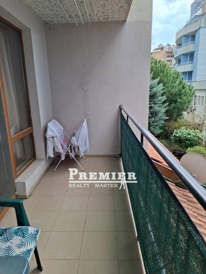 Студио в затворен, охраняем и добре поддържан комплекс с басейн и детска площадка. Комплекс в центъра на Слънчев бряг и на 300 м от плажа. Студиото се намира на 2-ри етаж, сградата е с асансьор, площ 45 кв.м. с красива голяма тераса. Студиото е напълно оборудвано с мебели и електроуреди. Идеален за постоянно живеене, идеален за лятна ваканция и чудесен за отдаване под наем. Такса поддръжка 300 евро на година. Документите за сделката са готови. Акт 16 Без комисионна от купувача