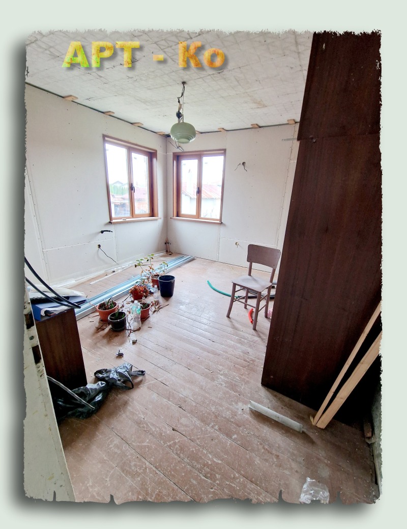 Върба. В дворно място от 561 м2 са ситуирани масивна сграда с РЗП 242 м2, масивен гараж 24 м2, лятна кухня- 19 м2 и стопанска постройка- 22 м2. Направена е реконструкция на съществуваща жилищна сграда на база изготвен проект за надстрояване. Така са обособени приземен етаж, етаж и надстроен - трети, мансарден. Всеки разполага с кухня-трапезария, дневна, спалня и санитарен възел с баня. Всички дограми са нови-алуминиеви с прекъснат термомост и стъкла 4 сезона. Изцяло е обновена електроинсталацията. Стените са гипсокартон с 10см. изолация. А за тези помещения, които не са завършени, има осигурен материал и изолация. Но впечатляващата тук инвестиция е изградената система за отопление с термопомпа. Закупени са радиаторите за цялата сграда. Да не пропуснем и цялостно новият покрив, също с изолоция в подпокривното пространство. Къщата е строена до регулацията, обърната към голямо дворно простанство- равен и южен двор. Именно с лице към двора е изградена пещ с идея за градинско барбекю и подведени колони за изграждане на навес. До входа на къщата е построен гараж с работилница. Завършен е не с плосък, а с двускатен покрив с подпокривно пространство. Останалите постройки в имота са допълващи-лятна кухня и стопанска сграда, като те не са реновирани. Един цялостно стойностен имот, с извършени едни от най-трудоемките дейности и спрян на етап за довършителни такива, каквито ще бъдат по вкуса на новия собственик.