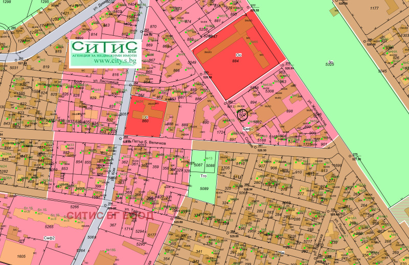 Агенция СИТИС предлага на вниманието Ви масивна сграда 452кв.м. на едно нови с височина 5м. изградена в парцел от 1235кв.м. Терена е с лице на улицата от 26м. с два входа, бетонна настилка в двора и асфалтова в сградата. Парцела попада в зона Смф2 с параментите на застрояване: плътност 40/60% Кинт 1,2 Кк-10м, което дава възможност за разширяване и надстрояване на сега съществуващата сграда или построяването на нова. Ток, вода, канал.