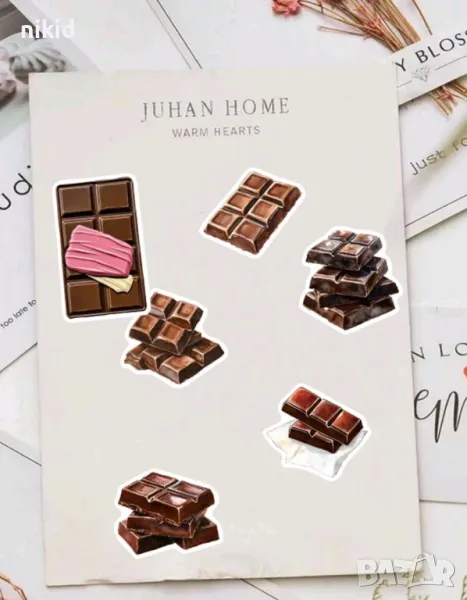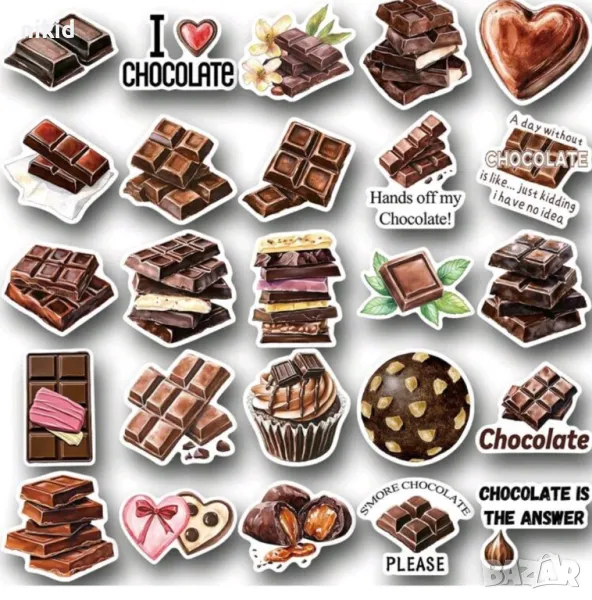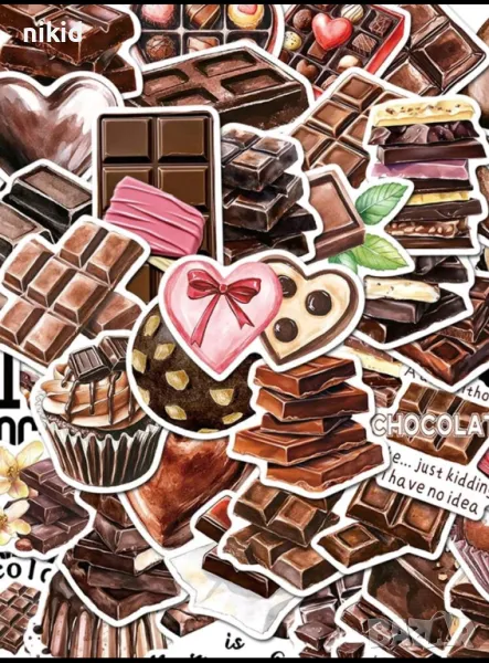 50 бр шоколад десерти лакомства самозалепващи лепенки стикери за украса декор картонена торта → Обява 49839384