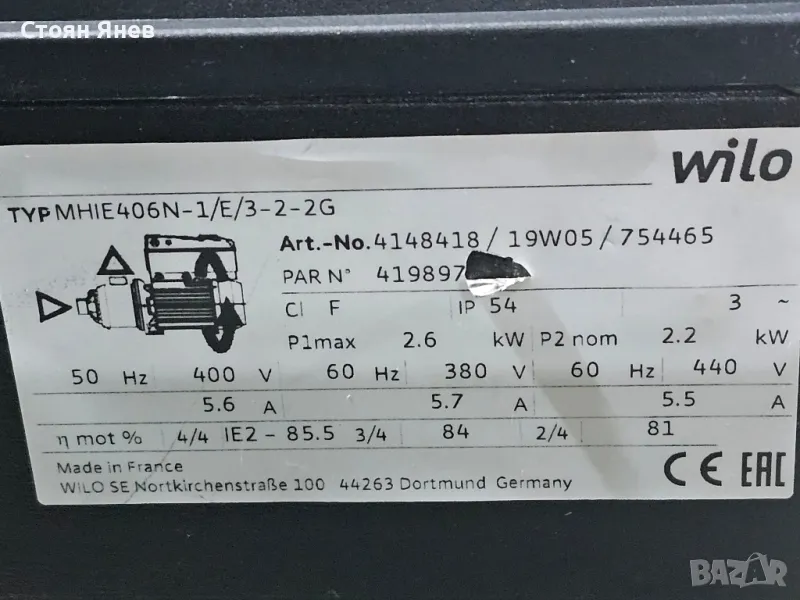 - Wilo MHIE406N - 2.2 KW - инверторна
