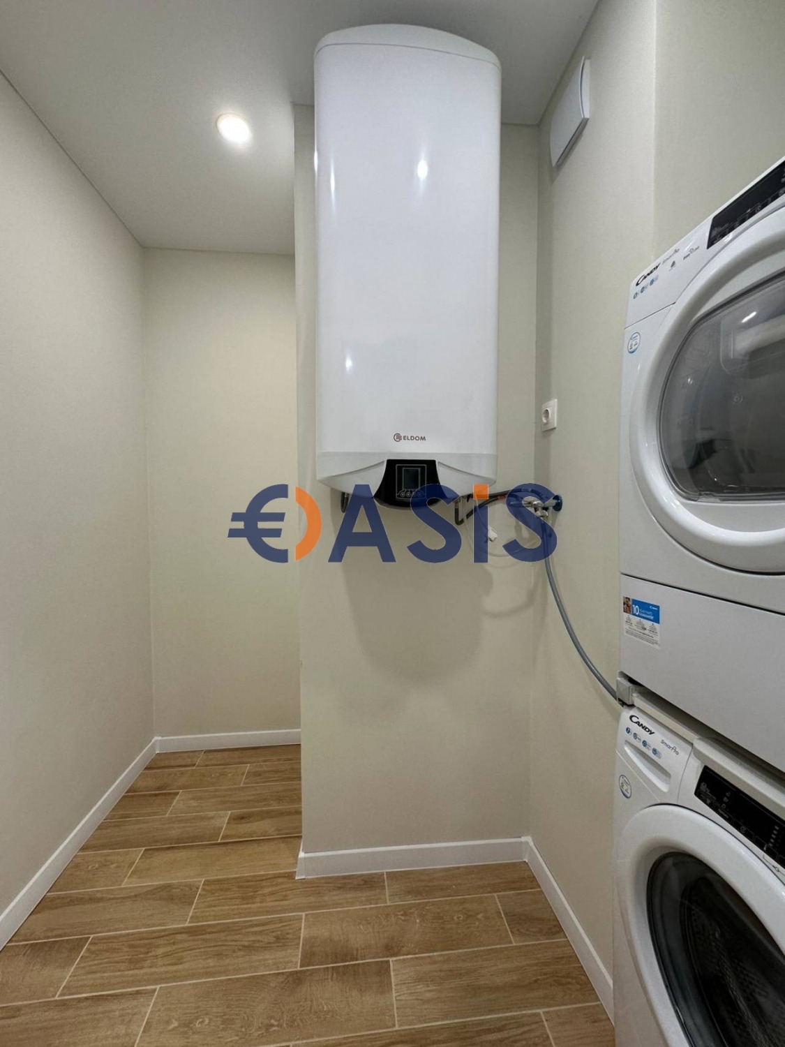 - просторен коридор с топъл под. От коридора има достъп до банята за гости и отделна пералня, оборудвана с пералня и сушилня.