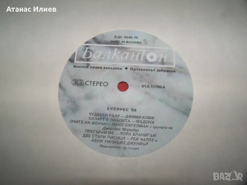 Сборна плоча, поп и рок музика "Експрес"86. Плочата е прослушана и е в много-добро състояние.
