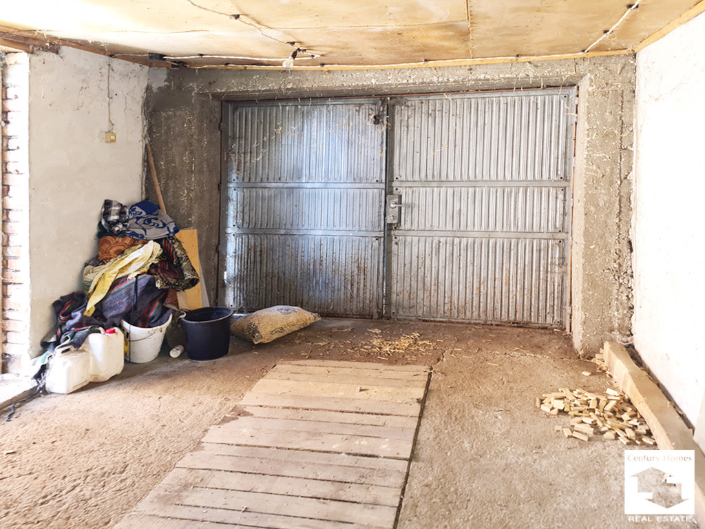 Дворът е равен и просторен, с площ от 1 200 кв.м., ограден с телена мрежа. В него са изградени масивен гараж, навес с пещ подходящ за летни събирания, както и голяма селскостопанска постройка с възможности за стопанска дейност, хоби или склад. Имотът е снабден с ток и вода.