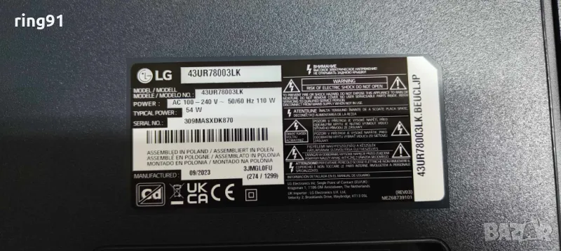 Захранване - EAX69502103 (1.0) TV LG 43UR78003LK → Обява 49842485