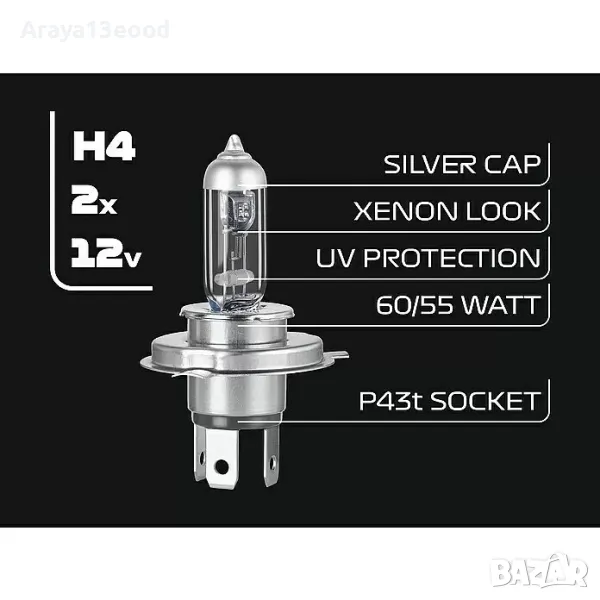 2 x H4 12V 60/55W халогенни крушки, P43t