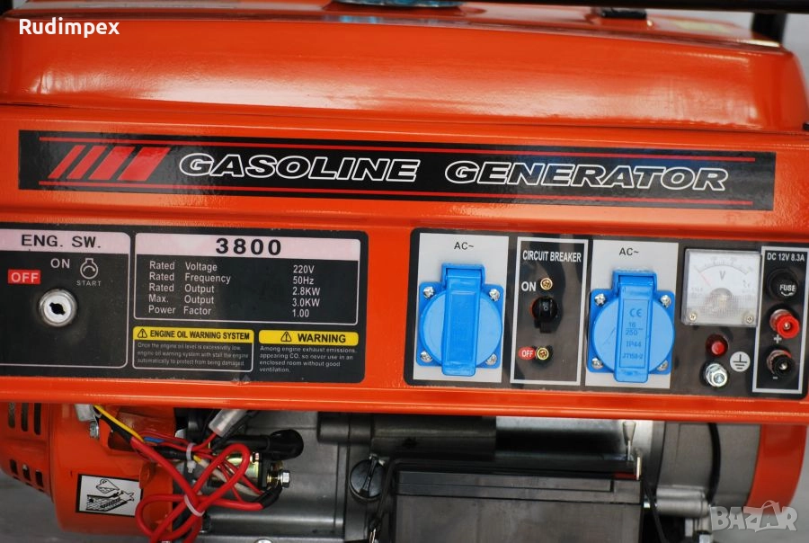 Генератора има 2 броя изходи за 220 V и един изход за 12 V.