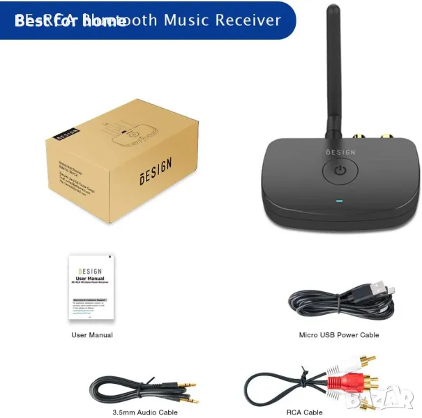 Besign BE-RCA Bluetooth музикален приемник с голям обхват за кабелен високоговорител или домашна стерео система