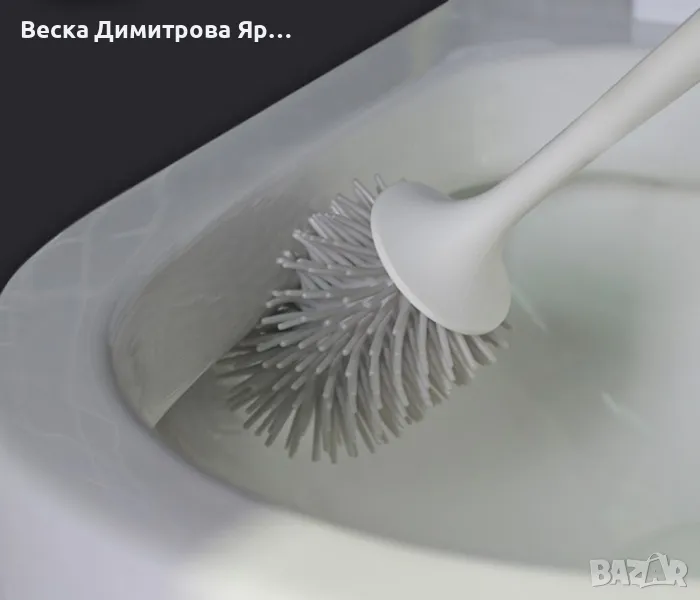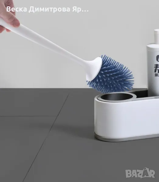 Тоалетна силиконова четка с двойна поставка в бяло и сиво → Обява 49843518