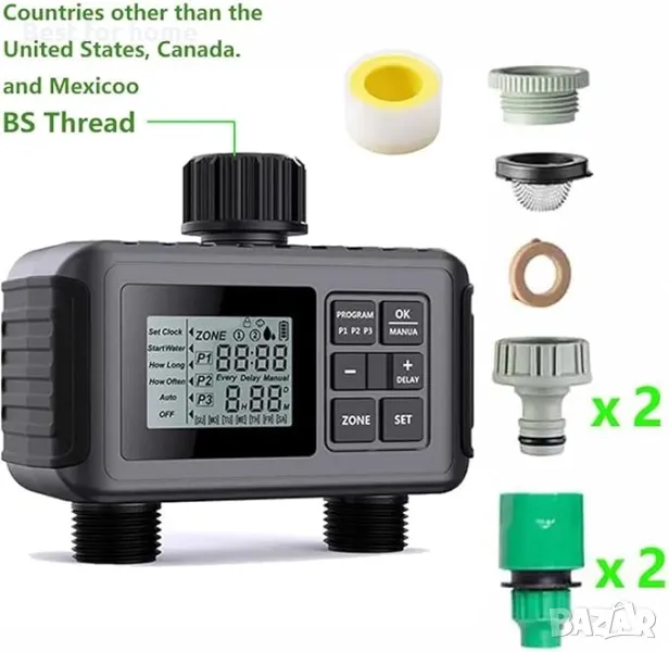 3 Отделни програми за синхронизация Таймер за подаване на вода Контролер за напояване на градината, Външен таймер за 2 зони, Контролер на система за автоматично напояване.