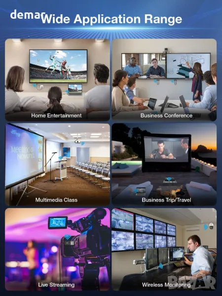 TIMBOOTECH Безжичен HDMI трансмитер и приемник с 5G Hz двоен канал, осигурява стабилен сигнал, надеждна предаване и нулево забавяне с качество до 1080P@60Hz. Лесно предавайте съдържание от лаптоп, PC, Blu-ray плейъри, камери и TV Box към телевизор или проектор без нужда от Bluetooth, WiFi или допълнителни приложения. Компактният и лек дизайн го прави лесен за носене и използване навсякъде.