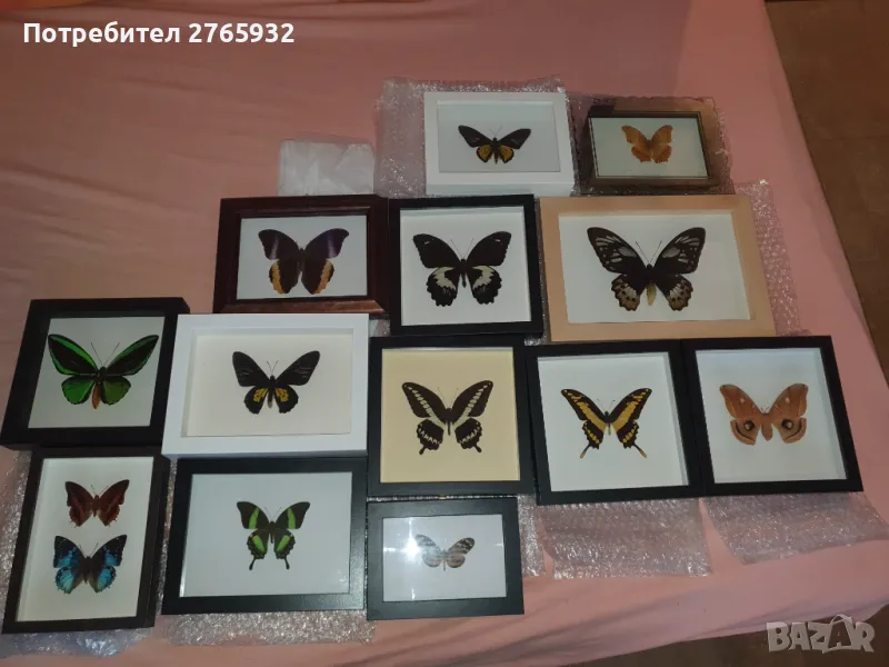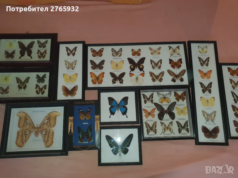 Предлагам на Вашето внимание една дълго събирана колекция от препарирани пеперуди. Прекрасна идея за подарък на Ваш приятел, колега, роднина или просто за декорация на Вашия имот. Пеперудите са събирани повече от 20 години от цял свят - над 100 вида. Изключиелно редки видове дневни и нощни пеперуди. Цената е крайна и е без коментар - тел. за контакти 0888/400/202