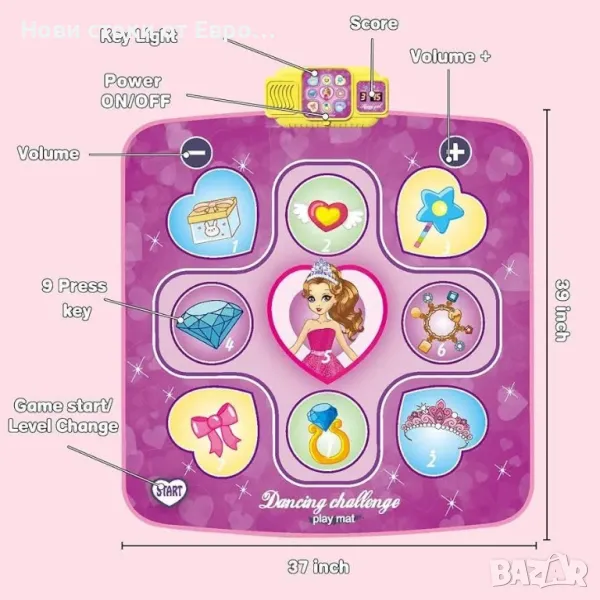 Играчки за подложка за танци, електронна сензорна подложка за танци с LED светлини,