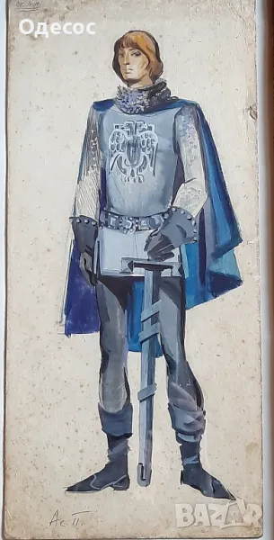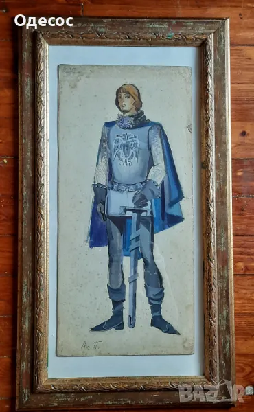 Стара картина на худ. Асен Попов (1895-1976) Размер без рамка 49/23. см. Размер с рамка 67/37см. Рисувана е с плакатни бои на картон,когато е работил като сценограф във Варненския Общински театър. Подписана