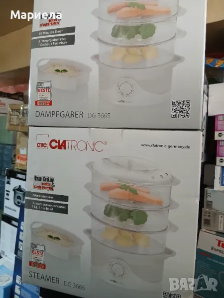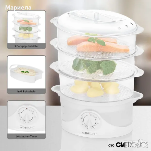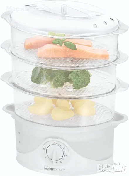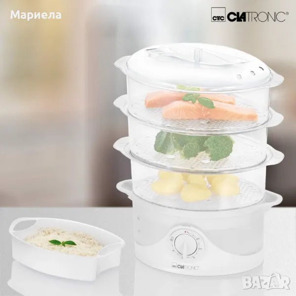 Clatronic DG 3665 Уред за готвене на пара, 60-минутен таймер, 3 тенджери, 800 W, бялХарактеристики: