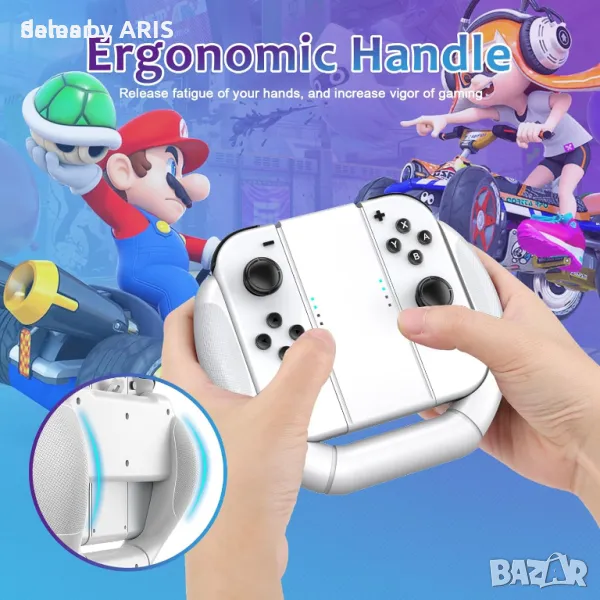 Този иновативен комплект за захващане на състезателно колело три в едно подобрява вашето игрово изживяване, като обединява левия и десния Joy-Con в един, по-голям контролер, допълнен с два калъфа за захващане за разширяване на обхвата на захващане. Проектиран за съвместимост както с моделите Switch, така и с OLED Joy-Con, този универсален аксесоар гарантира, че можете да се потопите напълно във всичките си любими игри. Изработени с ергономични съображения, двойните шприцовани гумени дръжки предлагат превъзходно задържане и комфорт, което позволява продължителни игрови сесии без умора на ръцете. Комплектът за захващане е специално пригоден за Nintendo Switch и Switch OLED Joy-Con, разширявайки възможностите ви за игри, особено в състезателни заглавия. Инсталирането е лесно благодарение на неговия лесен, щракващ се дизайн, което го прави удобен за геймъри от всички възрасти. Освен това дизайнът на защитната катарама предпазва вашите Nintendo Switch/Switch OLED ръкохватки от износване, осигурявайки издръжливост и спокойствие по време на употреба.
