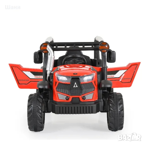 - Контрол от родителите: Дистанционното управление позволява на родителите да контролират скоростта и движението на трактора.