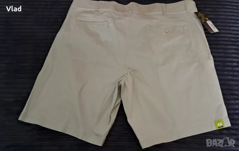 Цвят: светлобежово/stone, приятен и мек памук. Кройка: класически елегантен чино, с 2 джоба отпред и 2 джоба отздад. Обиколка на талия 118см., и ханш 127 см. Вътрешна дължина на крачола 25 см. Състав на материала: еластичен кепър (stretch twill) 98% памук, 2% еластан.