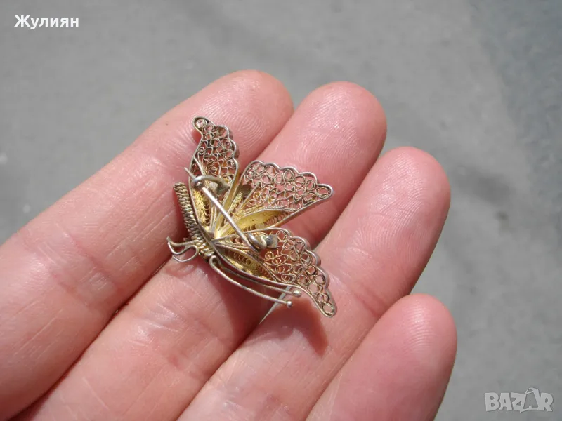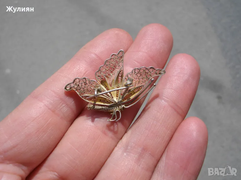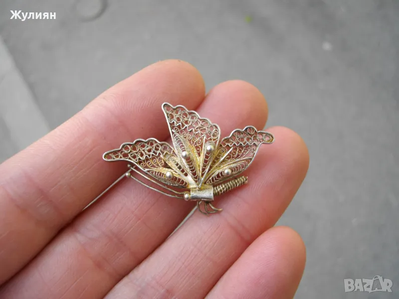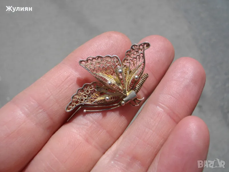 СТАРА СРЕБЪРНА БРОШКА ПЕПЕРУДА ФИЛИГРАН → Обява 49845754