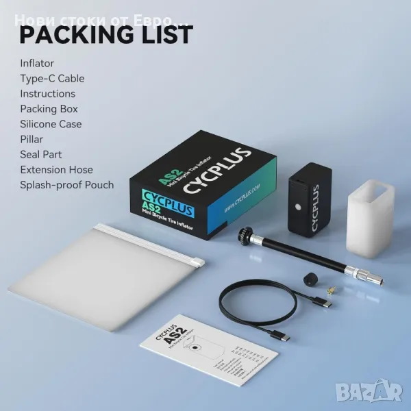 помпа за велосипеди Преносима Ultra-Mini 100PSI електрическа помпа за велосипеди Тип-C акумулаторна батерия, без дисплей за налягане (Победител в наградата EUROBIKE 2023)【Джобен размер и преносим】: Тегло: 3,42 унции (97 g); Размер: 1,81 x 1,1 x 2,52 инча, мини и лек. Преносим за носене и съхранение: може да се прикрепи към раницата ви или да се постави в джоба ви. Работа с един бутон, фокусирана върху надуване на велосипед или зареждане с въздух (Забележка: Щракнете двукратно, за да включите въздушната помпа)【Мощно надуване】: Максимално въздушно налягане от 100 PSI и скорост на вятъра от 5 L/min позволява на въздушната помпа CYCPLUS Tiny Pump да постигне бързо надуване, достигайки 80 PSI за почти 80 секунди, пълнейки с въздух гумата на велосипеда по всяко време бързо и удобно.Акумулаторна батерия: необходими са само 20 минути за пълно зареждане. При пълно зареждане може да напомпа две гуми 700 x 25 C от 0 до 80 psi.【2 вида дюзи】: Съвместими както с клапан Schrader, така и с клапан Presta, комбинирани в едно, лесни за носене; Може да отговори на нуждите на любителите на колоезденето, но също така е лесно да споделяте и да си помагате взаимно с вашите приятели колоездачи.【Издръжлив и безопасен】: Въздушната помпа CYCPLUS Tiny Pump може да напомпа най-малко 200+ гуми, което е преносимо, издръжливо и безопасно.【Обслужване на клиенти】 Всички продукти на CYCPLUS се предлагат с двугодишна гаранция. Ако имате проблеми с използването на продукта през този период, можете да се свържете с нас по всяко време. Нашето обслужване на клиенти ще се свърже с вас за ремонт и