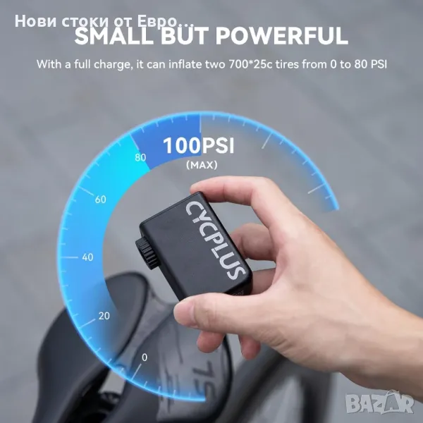 CYCPLUS Малка помпа за велосипеди Преносима Ultra-Mini 100PSI електрич помпа за вел Тип-C акум бат
