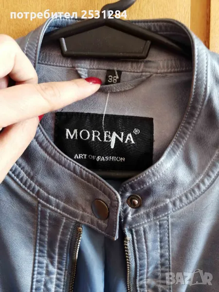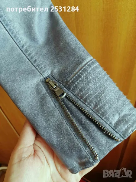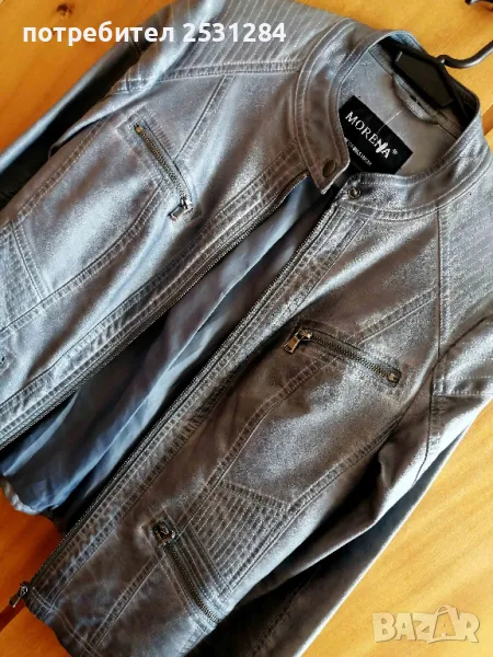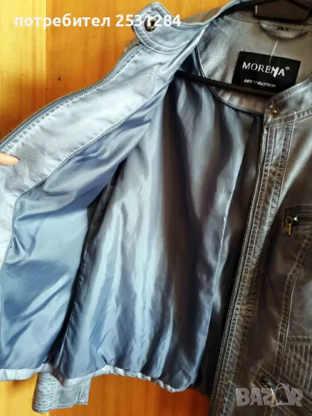 Спортно-елегантно синьо-сиво кожено яке, размер 38 / М-Л