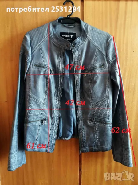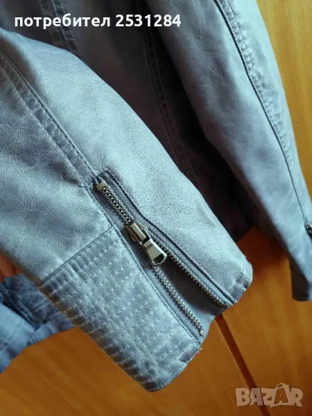 Якето е с цип, вталена кройка от изкуствена кожа.