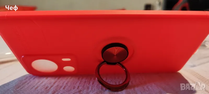 Червен, ултра тънък калъф, който пасва идеално, предпазва и запазва тънкия дизайн на телефона. Със специален пръстен, който се върти на 360°, с цел поставяне на телефона в различни позиции. Допълнително има силен магнит в центъра, подходящ за прикрепяне към поставка в автомобил. Издръжлив, но същевременно красив и мултифункционален.