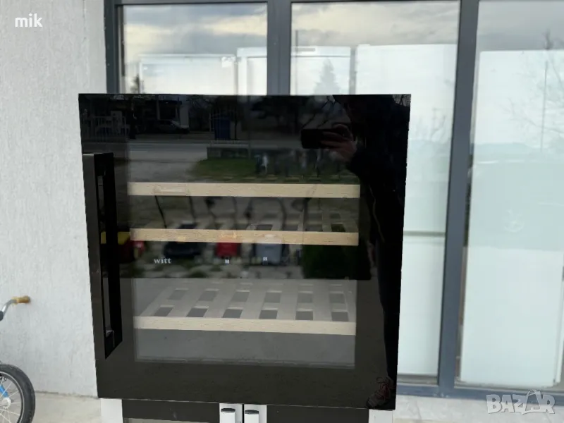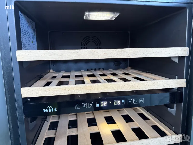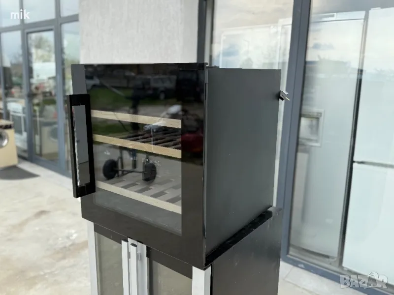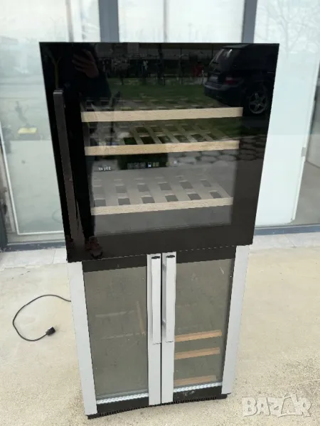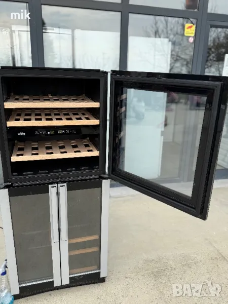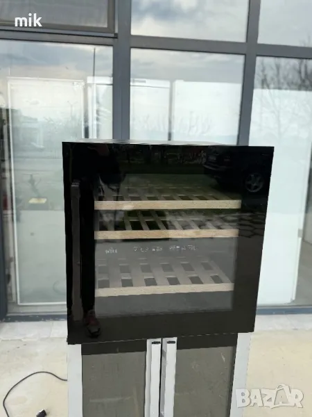 Малка хладилна витрина. Размери 58в/56ш/55д. Оригинално оборудване. Перфектен външен вид. Здрави уплътнения. Витрината работи на 2 температурни нива за бяло и за червено вино. Работна температура 5/10градуса на едното ниво и 12/20 на другото ниво.