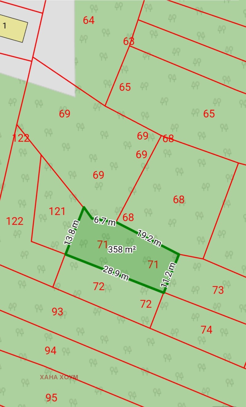 - Площ: 358 кв.м; ливада;