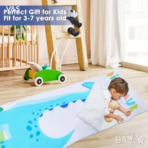 Детски топъл спален чувал с подвижна възглавница, сгъваема постелка за дрямка за момичета и момчета,