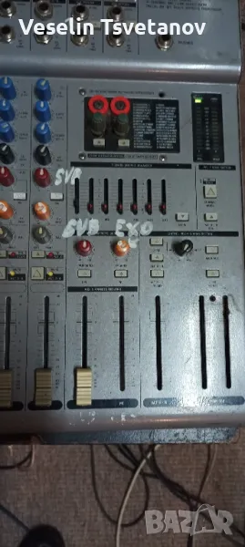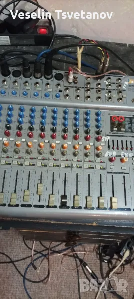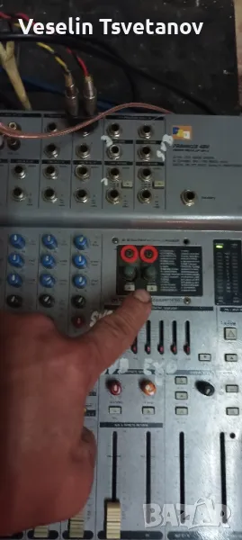 миксера работи в момента се ползва за репетиции,няма проблем в каналите,но единия канал се губи,трябва му профилактика.