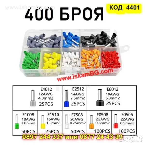 Този комплект съдържа 1 брой кримпващи клещи с квадратна матраца + Комплект накрайници (кабелни кримпващи накрайници) за кримпер/кримпващи клещи в кутия - 400 бр.