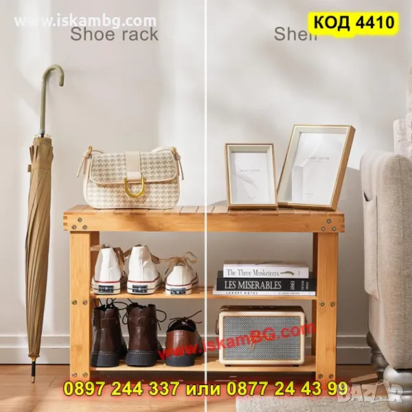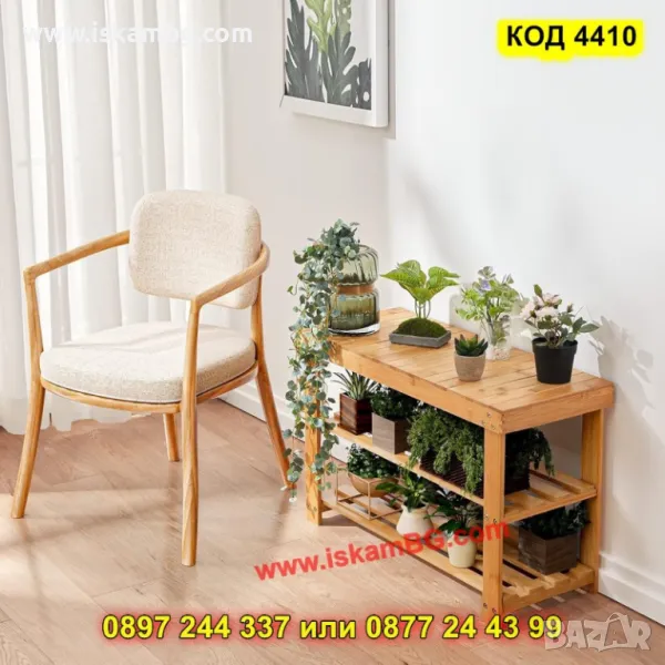 1 брой дървена етажерка за обувки на 3 рафта с пейка