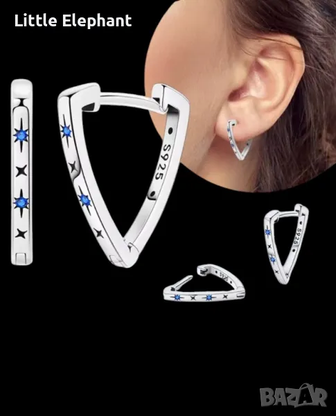 Сребърни обеци триъгълници бохемски стил"Neptagram,Luxery Anniversary jewelry"/нови → Обява 49849872