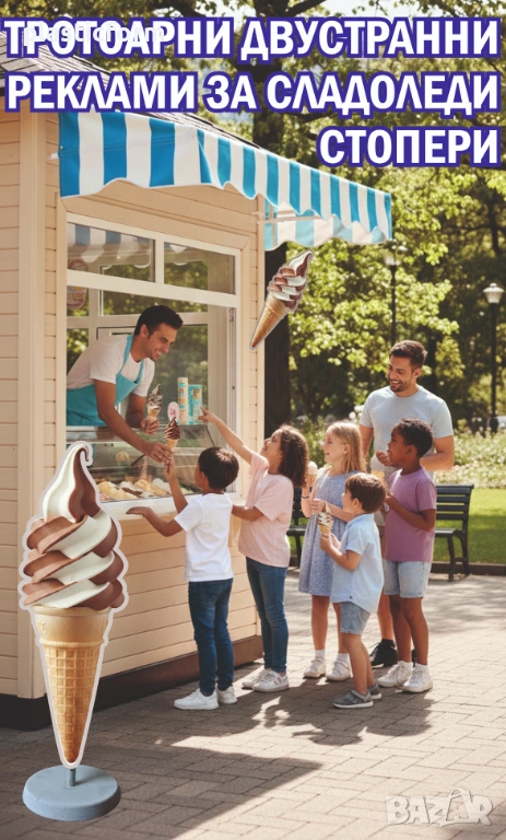 Привлечете погледите на минувачите с атрактивна и реалистична реклама на сладолед! Продавам висококачествени тротоарни табели (стопери), идеални за обекти за сладолед от машина.