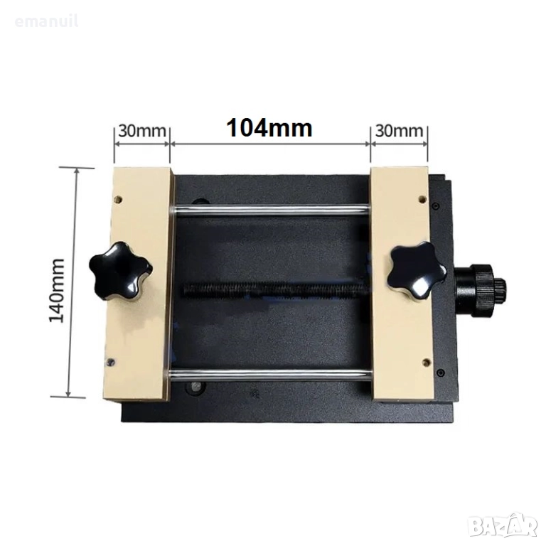 Захват на основата през 4-ри отвора ф6мм с разстояние от център до център 100/100мм