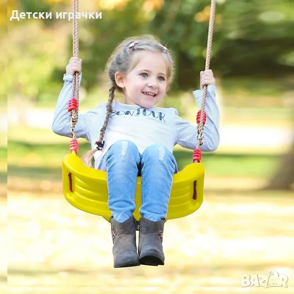 Детската люлка може да се монтира в двора/градината или в къщата, за да могат малчуганите да се забавляват независимо от времето навън.