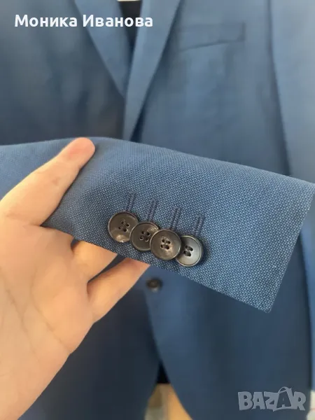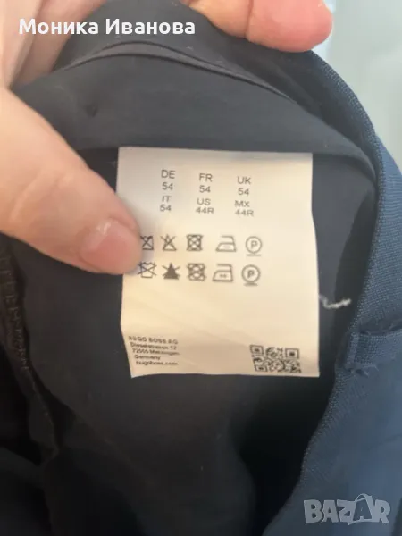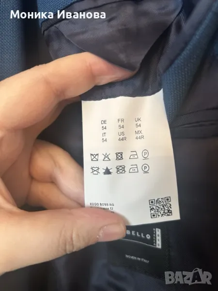 HUGO BOSS, мъжки костюм, размер EUR 54/USA XL, цвят - морско синьо, плат - 100% вълна, малко обличан - в отлично състояние, 100% оригинален, модел 2025, сакото е с две цепки. Изпращам до офис на Еконт - доставката ще струва около 8 лв.