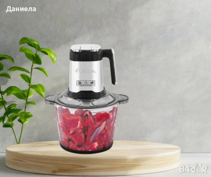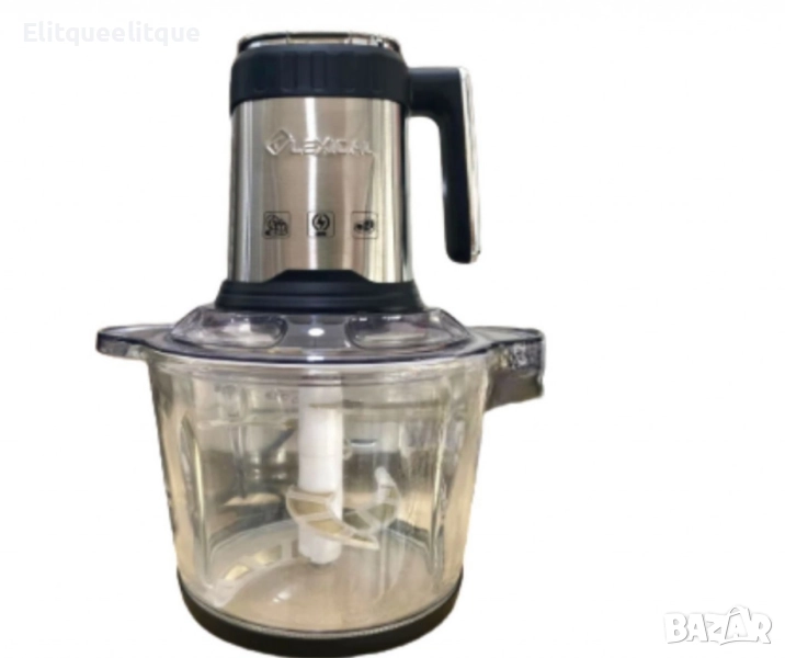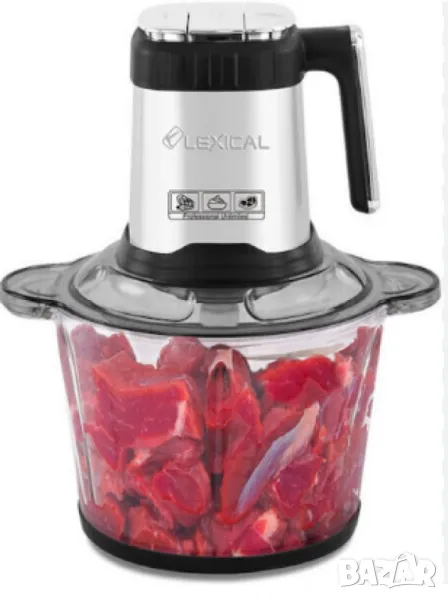 чопър;Технически характеристики – Lexical LCH-1975Модел: LCH-1975Тип: Кухненски чопър / Универсален резач / МесомелачкаЗахранване: 220-240V ~ 50/60HzМощност: 400 WМотор: 100% меден (Full copper motor)EMC защита: Да – отговаря на електромагнитна съвместимостКорпус: Неръждаема стомана (Stainless steel housing)Скорости: 2 скорости + Pulse функцияСистема за безопасност: Вграден защитен ключ (Safety switch)Купа:Капацитет: 3 литраМатериал: Закалено стъклоОстриета Брой: 6Материал: Титаниево покритие (Titanium blades)Подходящи за бързо и равномерно рязанеЧопър механизъм:С подвижна (детachable) режеща ос – лесно почистванеПодходящ за: Месо, зеленчуци, плодове, ядки, подправки и др.Гаранция: 24месеца.